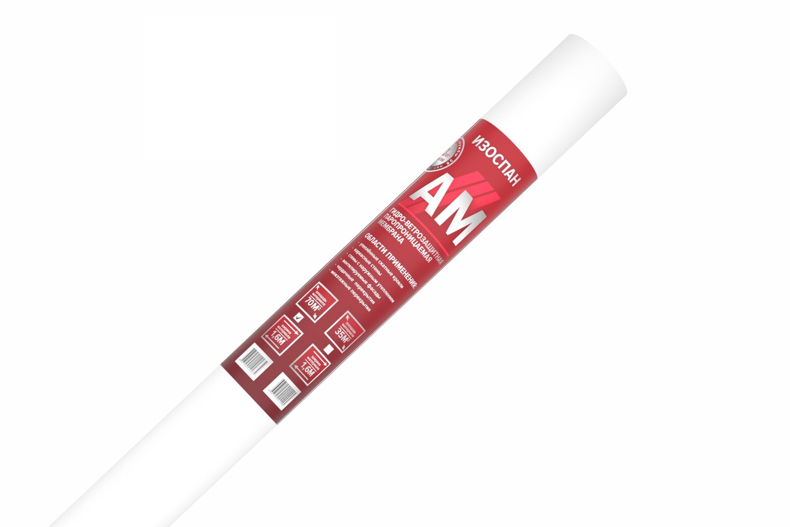 Изоспан AM — гидроизоляционная ветрозащитная паропроницаемая трехслойная мембрана, применяется для защиты утеплителя и элементов кровли и стен от ветра, конденсата и влаги из внешней среды. Изоспан АМ укладывается непосредственно на утеплитель без вентзазора, что позволяет избежать затрат на обрешётку между утеплителем и Изоспаном АМ.