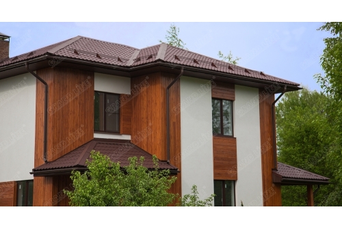 Водосток Grand Line 125/90 — оптимальная система для малоэтажного коттеджного строительства. За счет углубленного желоба (на 25 % по сравнению с другими производителями) обеспечивает лучший проток воды и гораздо меньше подвержена засорению. Матовый водосток придает стильный и эстетичный внешний вид дому. Водосток окрашен матовой краской.
